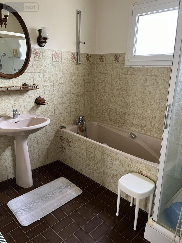 Saint Brévin les Pins : proche commodités, maison traditionnelle de plain pied, d'une surface habitable d'environ 109m² sur terrain de 587m², composée d'une entrée, salon-séjour avec cheminée, cuisine aménagée et équipée, véranda. Couloir, deux chambres, salle de bains + douche, wc. Garage attenant + cave. Jardin devant et derrière la maison avec serre.