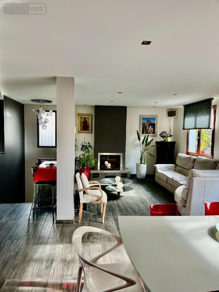 - un salon séjour avec cuisine aménagée et équipée. La surface globale est d'environ 58m² et dispose d'une cheminée avec insert.