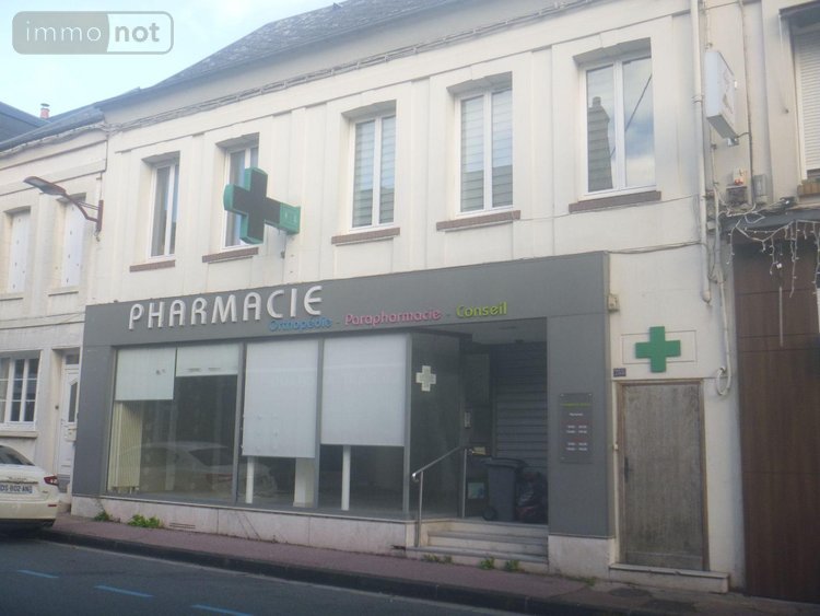 FAUVILLE EN CAUX CENTRE : LOCAL COMMERCIAL sur deux niveaux d'environ 145 m2 avec grenier au dessus- Grande vitrine - DPE vierge. Egalement à l'étage : un appartement de 50 m2 loué avec accès extérieur. Cave voûtée- Courette.