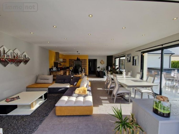 Un hall d'entre, un séjour-salle à manger avec cuisine américaine de 55 m² ouvrant sur terrasse, un couloir, cinq chambres dont une suite parentale avec salle d'eau et dressing.