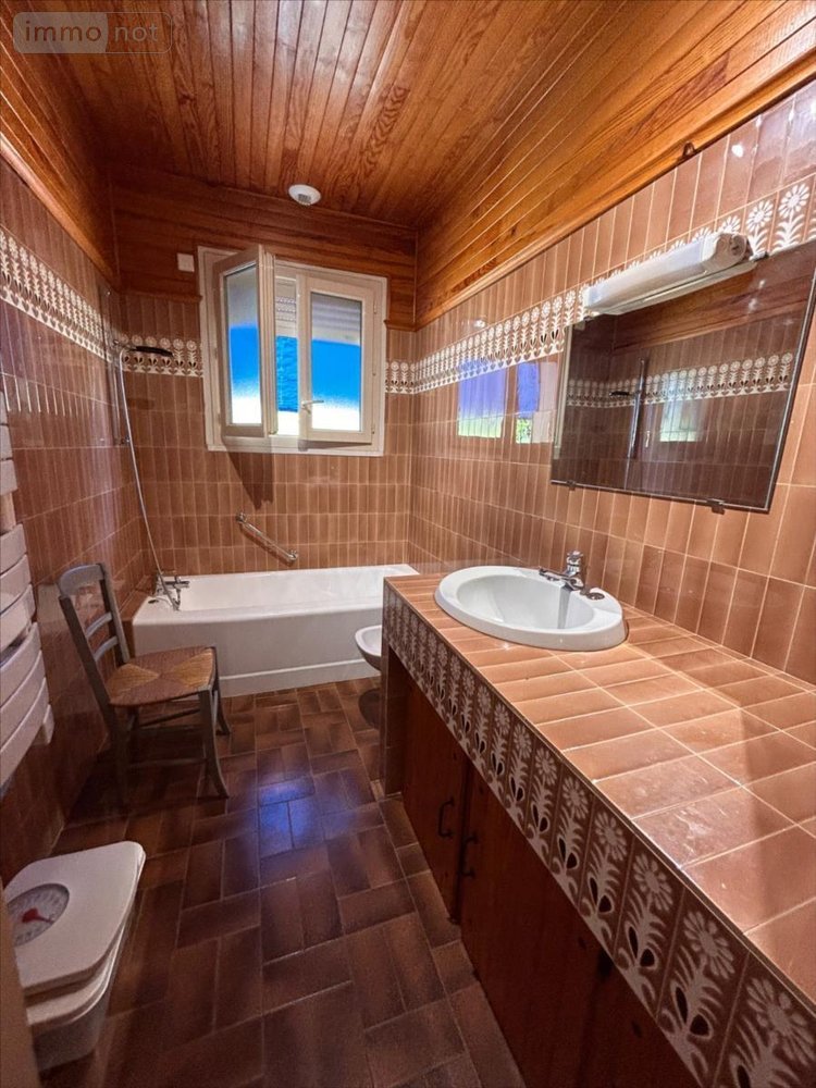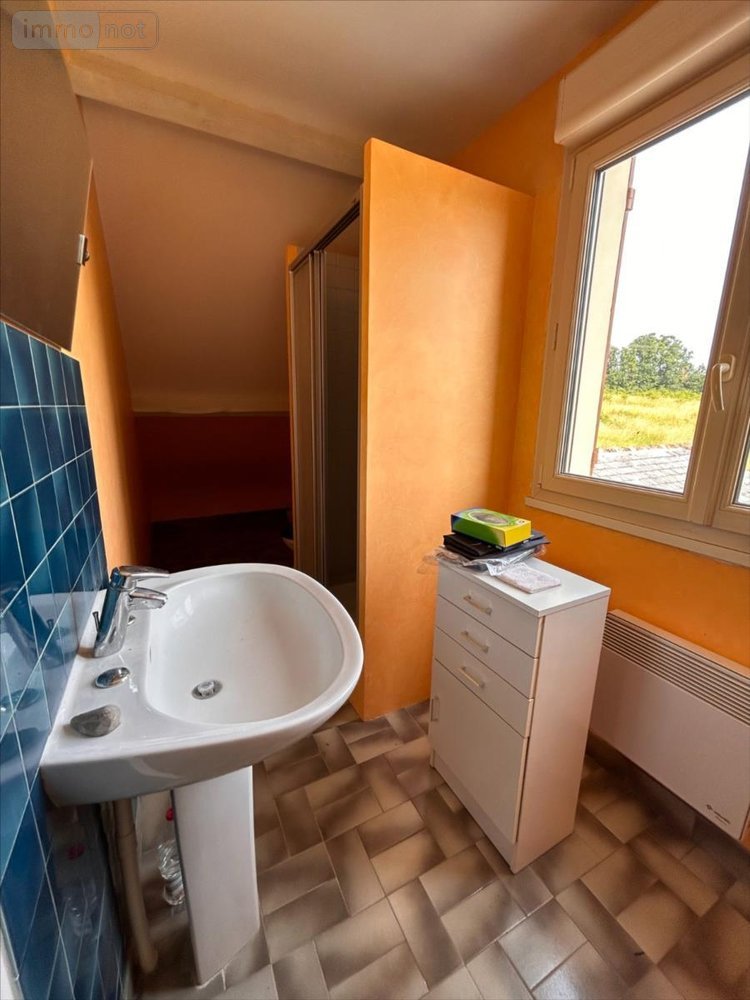 A l'étage : 1 grande chambre avec un cabinet de toilette et WC.