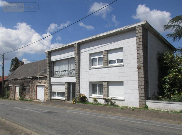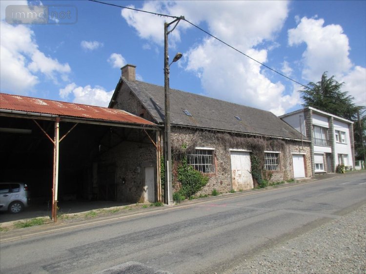 A vendre, sur l'axe ERNEE / MAYENNE, en Mayenne (53500). Maison à usage d'habitation comprenant, au rez-de-chaussée : entrée, salle à manger, cuisine et une chambre ; à l'étage : salle de bains, WC et trois chambres. Sur l'arrière : chaufferie, cellier et cave. Dans le prolongement : Garage (24m²) et atelier (77 m²) avec grenier au-dessus. Hangar. Terrain avec puits. L'ensemble sur environ 1400 m²