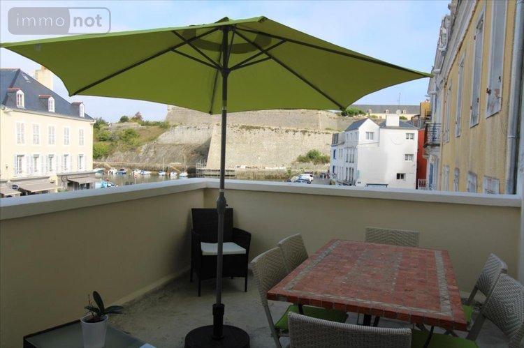 BELLE-ÎLE EN MER - Appartement de plain pied, d'environ 120 m², dans un immeuble refait à neuf, au coeur du bourg de LE PALAIS, comprenant : entrée avec placard et cellier, vaste pièce à vivre de 55 m² avec cuisine équipée ouverte, deux chambres, salle d'eau avec WC. Terrasse d'environ 13m2 avec vue sur la Citadelle Vauban et le port de LE PALAIS. Honoraires de négociation à la charge de l'acquéreur : 14 350 euros.Les informations sur les risques auxquels ce bien est