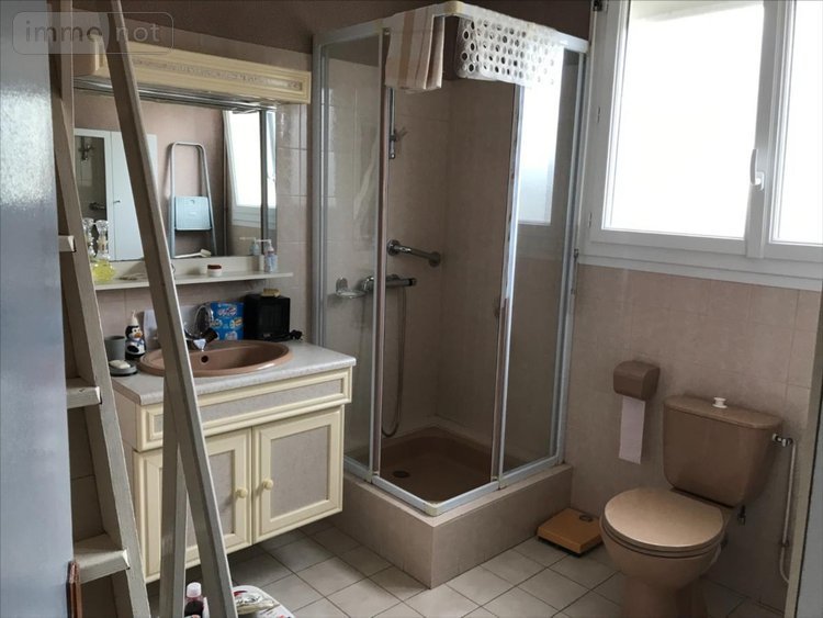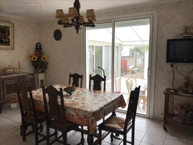 A Vendre à Riantec, proximité 'Petite Mer de Gavres', maison 80 m2 habitables sur 500m2 jardin, comprenant: RDC: entrée, séjour, salon (chambre possible), WC, cuisine. 1er Etage: 3 chambres, salle d'eau avec WC. Chauffage fuel, véranda, garage, grenier (env.25m2), buanderie, appentis. Classe énergie: F 305kWh/m2/an.
