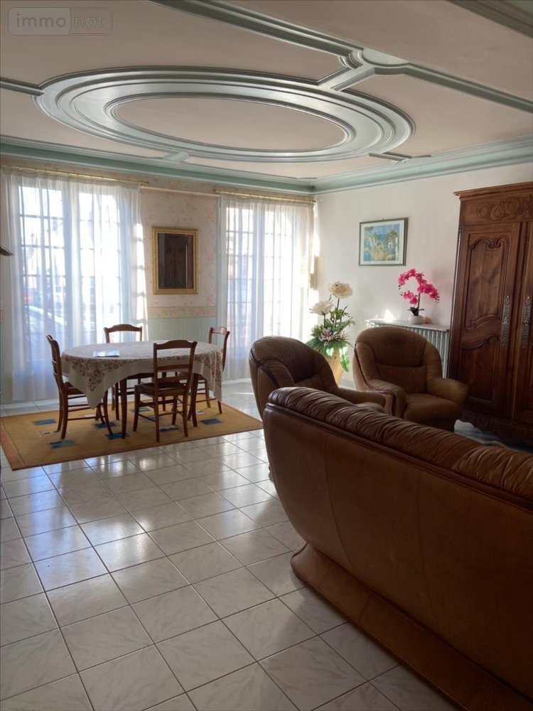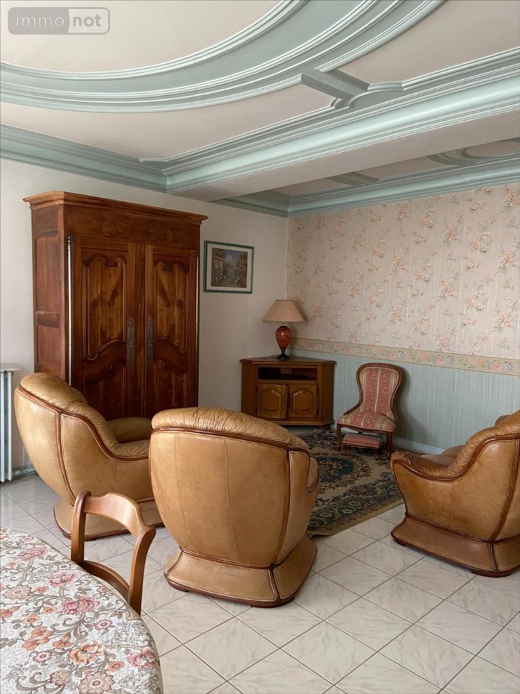 - au rez-de-chaussée : une entrée, une cuisine, une salle-à-manger, un salon, un bureau, une salle d'eau, W.C., une chaufferie ;- à l'étage : quatre chambres, une salle de bains, W.C., un grenier aménageable ;- au deuxième étage : un grenier aménageable, une pièce ;Une cave voutée ;Un garage.Cour