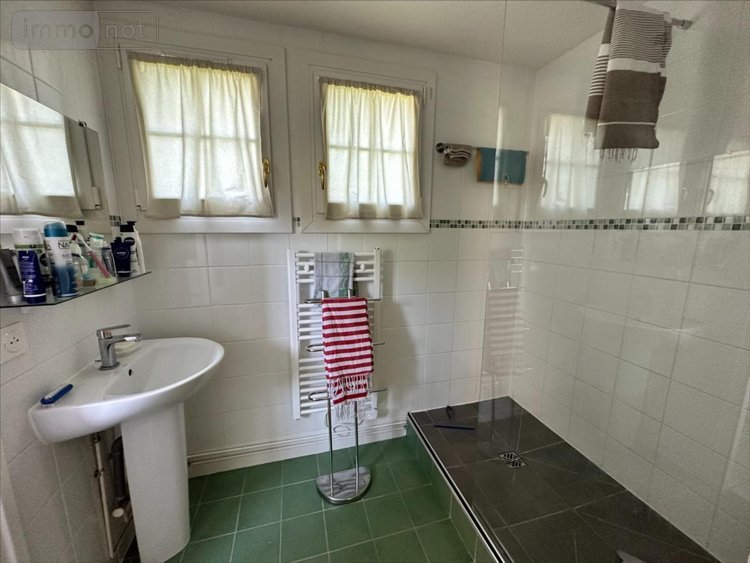 A l'étage une grande pièce palière donne accès à trois chambres ainsi qu'une salle de douche avec WC.