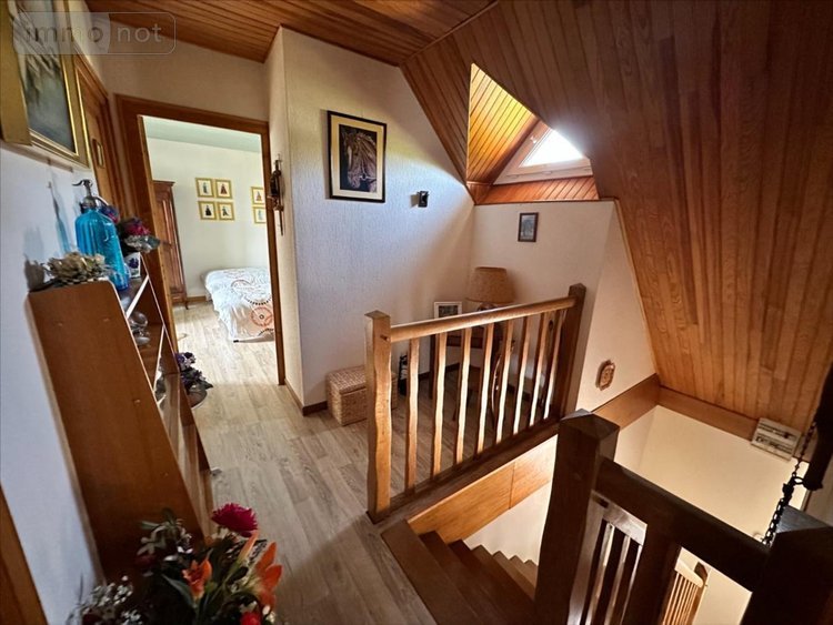 A l'étage un palier offre l'accès à une salle de bain, un WC et deux chambres.