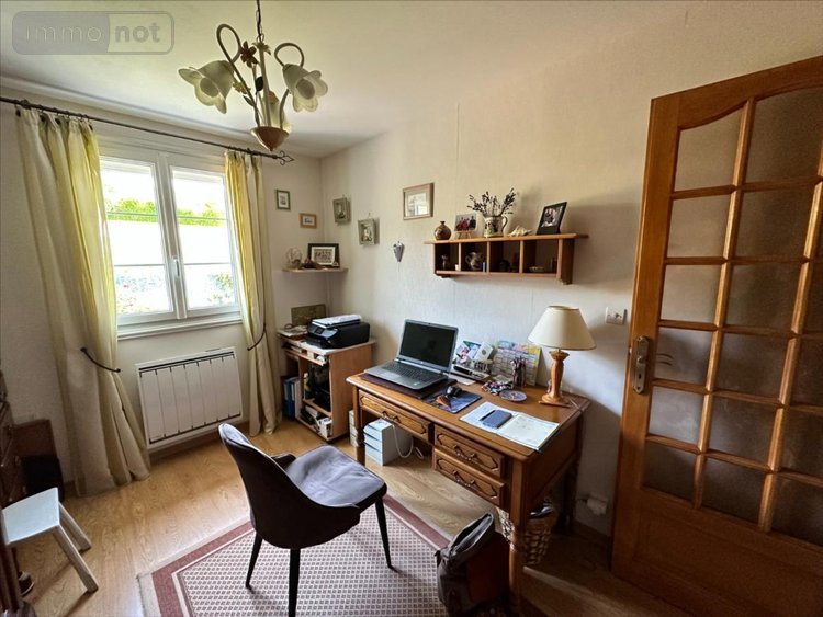 Cette dernière est composée au rez-de-chaussée d'une entrée, salon avec cheminée, séjour, cuisine aménagée et équipée, un WC individuel, une salle de douche, une chambre et un bureau.
