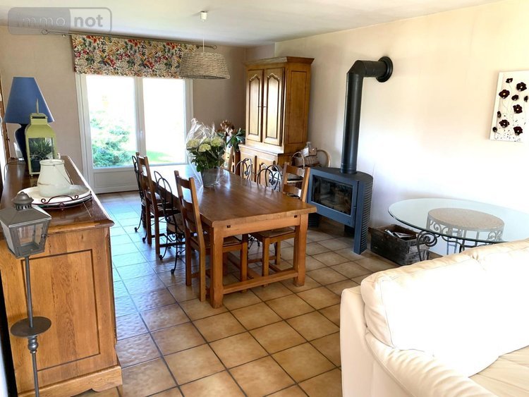 Vous trouverez une cuisine de 13.5m² orientée vers le jardin. Le salon-séjour de 40m² est équipé d'un poêle à bois.