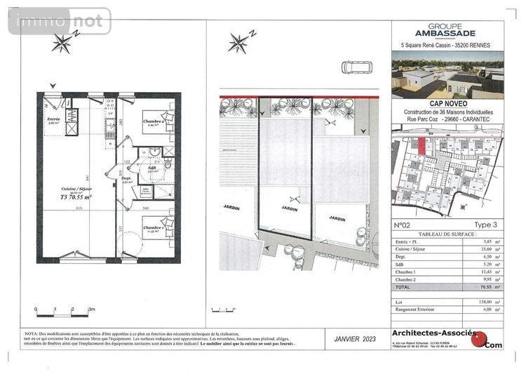Nouveau programme sur CARANTEC dans le finistere (29), Villas de plain-pied de type T2 T3, avec jardin, parking, abri de jardin et accès PMR, à l'architecture contemporaine, alliant parements pierres et bardage bois, vous séduirons par leurs situations, sa proximité du bourg, de la mer et des services. (vente en l'état futur d'achèvement - frais notaire réduit)