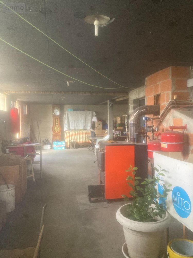 Au rez-de-chaussée un grand sous-sol avec deux portes de garages en bois, WC, dégagement, un local fioul et un local électrique