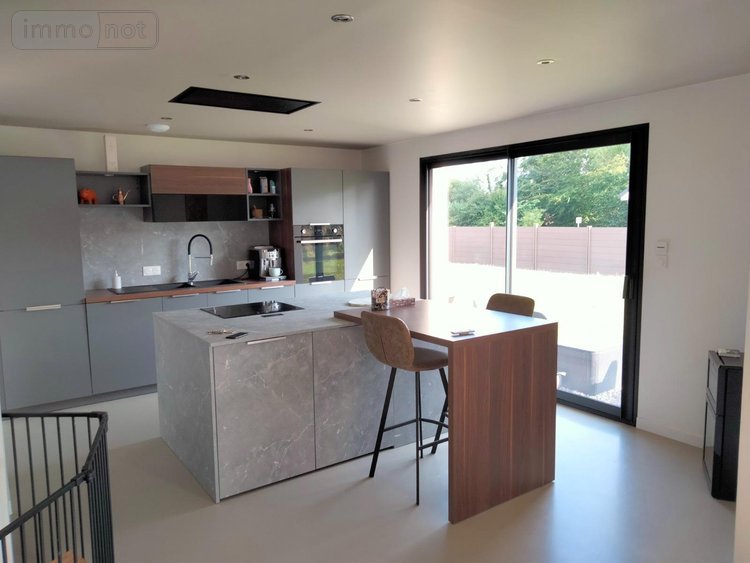 - Au rez-de chaussée : entrée, cuisine équipée avec matériaux et électroménager de qualité et îlot central et hotte intégrée au plafond, ouverte sur une grande pièce de vie, le tout sur plus de 60m2 d'espace à vivre, pièce technique avec système d'adoucisseur d'eau, arrière-cuisine, buanderie et WC,