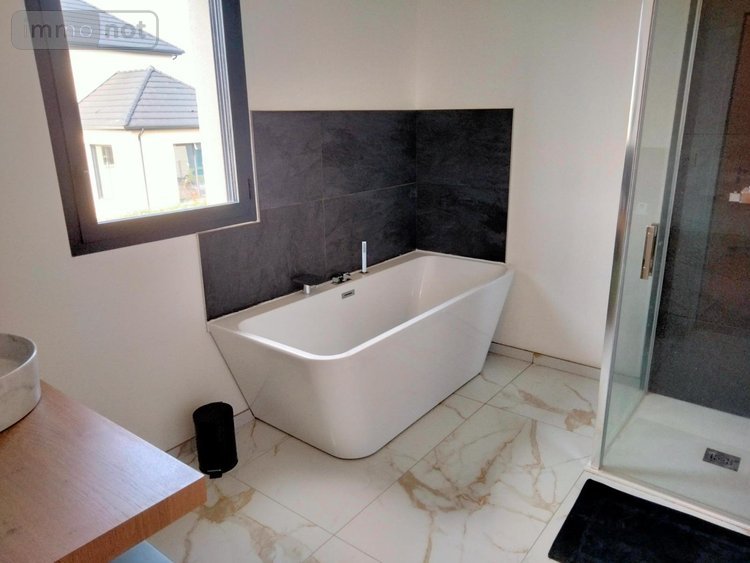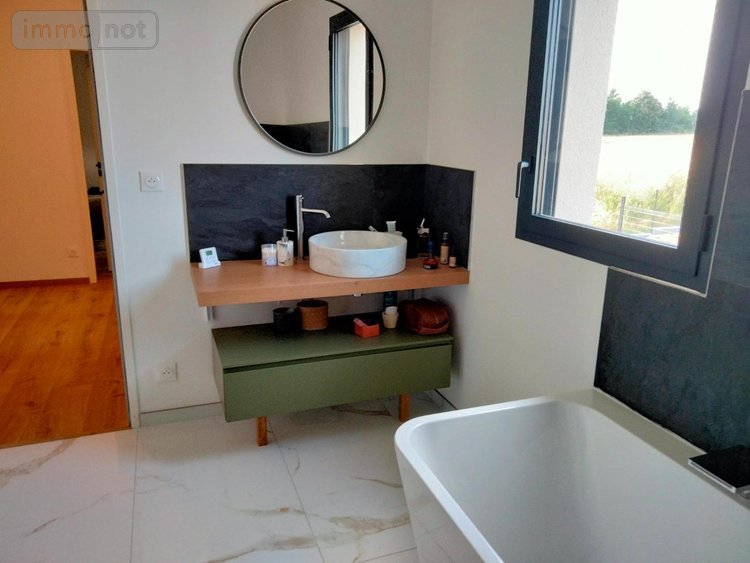 - A l'étage desservi par un bel escalier ouvert : palier, salle de bains, WC, deux grandes chambres de 12m2 et une suite parentale avec accès privatif d'un côté à son dressing et sa propre salle de bains.