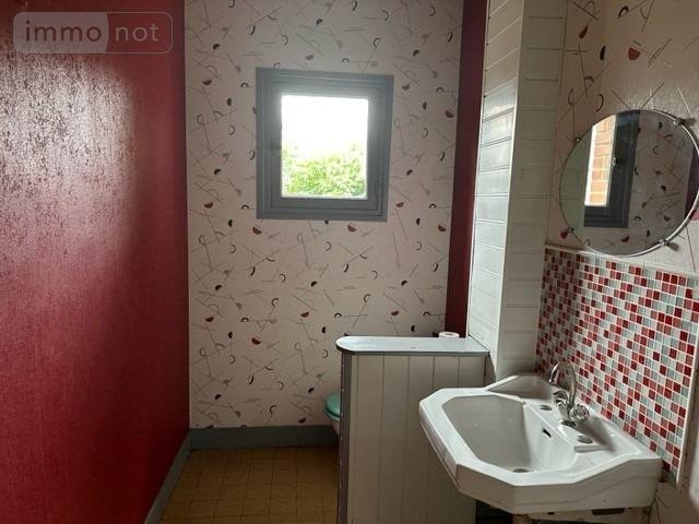 Maison à vendre à Londinières en Seine-Maritime (76), comprenant : au rez-de-chaussée : hall d'entrée, séjour, cuisine, salle de bains, WC avec lave mains, chambre. A l'étage : palier, trois chambres, cabinet de toilette avec WC. Chauffage central au fioul. Garage. Réserve. Petit cellier. Cour goudronnée. Jardin. le tout sur un terrain de 1037m².