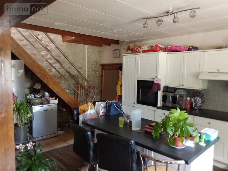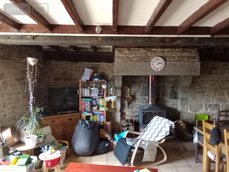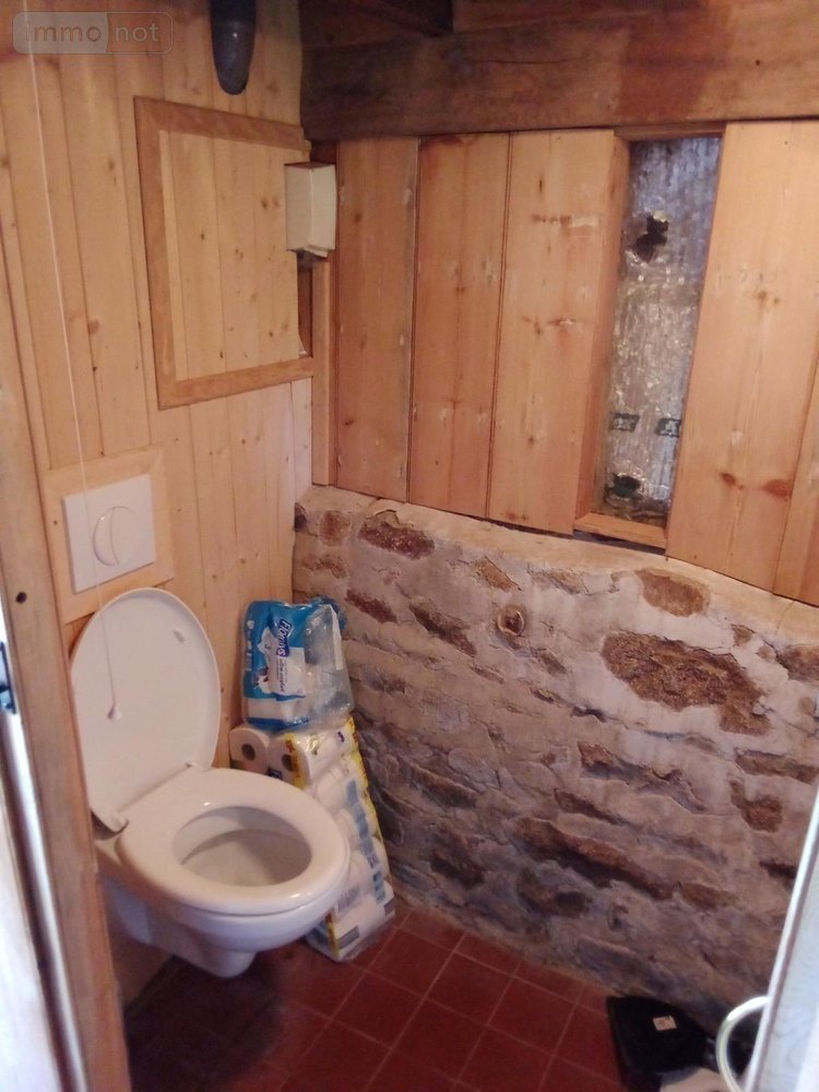 Maison de campagne en pierre avec au rez-de-chaussée, un séjour avec belle cheminée en pierre et poêle à bois intégré, suivi d'une cuisine aménagée avec îlot centrale ouverte sur le salon. Un WC, une salle d'eau et un dégagement.