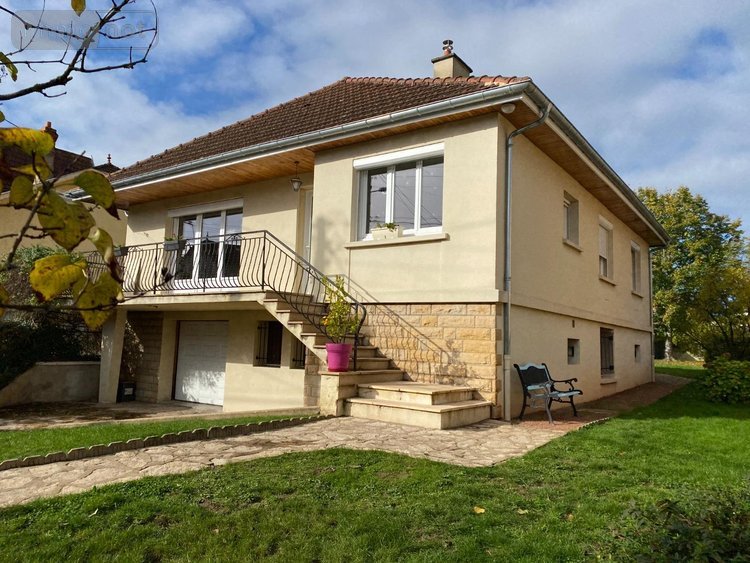 Maison à vendre à Paray-le-Monial en Saône-et-Loire (71) - A 2 min du CENTRE VILLE - Maison de 1972, élevée sur sous-sol, comprenant une entrée avec dégagement et placards, desservant un salon séjour de 36 m² en L avec cheminée à foyer fermé et balcon, une cuisine meublée et équipée de 14 m² environ, trois chambres de 10m² avec placard, 13 et 13 m², une salle d'eau rénovée, un WC indépendant; Le tout sur sous-sol à usage de garage, cave, chaufferie, WC, salle de jeux, cellier; Garage indépendant ; L'ensemble est implanté sur un terrain arboré de 823 m² entièrement clôturé; Chauffage gaz de ville; Huisseries en bois et PVC double vitrage (neuve pour la porte fenêtre donnant sur le balcon) ;