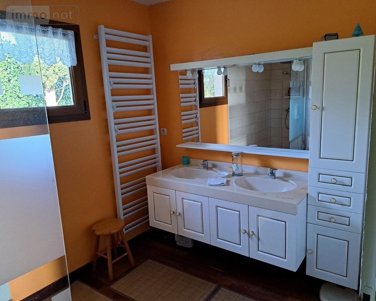 - au rez-de-chaussée : Véranda, cuisine aménagée, wc, salle d'eau avec douche et deux vaques, séjour avec cheminée insert (accès à la véranda), chambre, salle à manger (accès cave et chaufferie), bureau avec escalier pour monter à l'étage, chambre