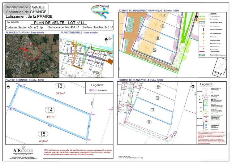Terrain a batir à vendre Changé dans la Sarthe (72), idéalement situé, dans le lotissement La Pairie, ce terrain viabilisé est proche des commerces, des transports et de toutes commodités accès direct aux écoles et collège par le réseau de voies douces.