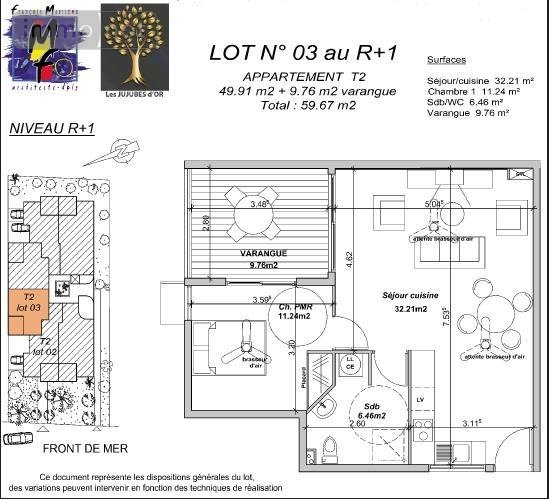 Appartement T2 de 49.91 m² avec 9.76 m² de varangue au R+1 et 1 parking à vendre dans une nouvelle résidence de standing LES JUJUBES D'OR sur le Front De Mer de St Paul.