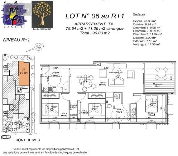 Appartement T4 de 78.64 m² avec 11.36 m² de varangue au R+1 et 1 parking à vendre dans une nouvelle résidence de standing LES JUJUBES D'OR sur le Front De Mer de St Paul.