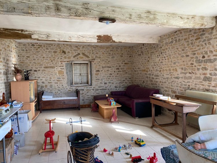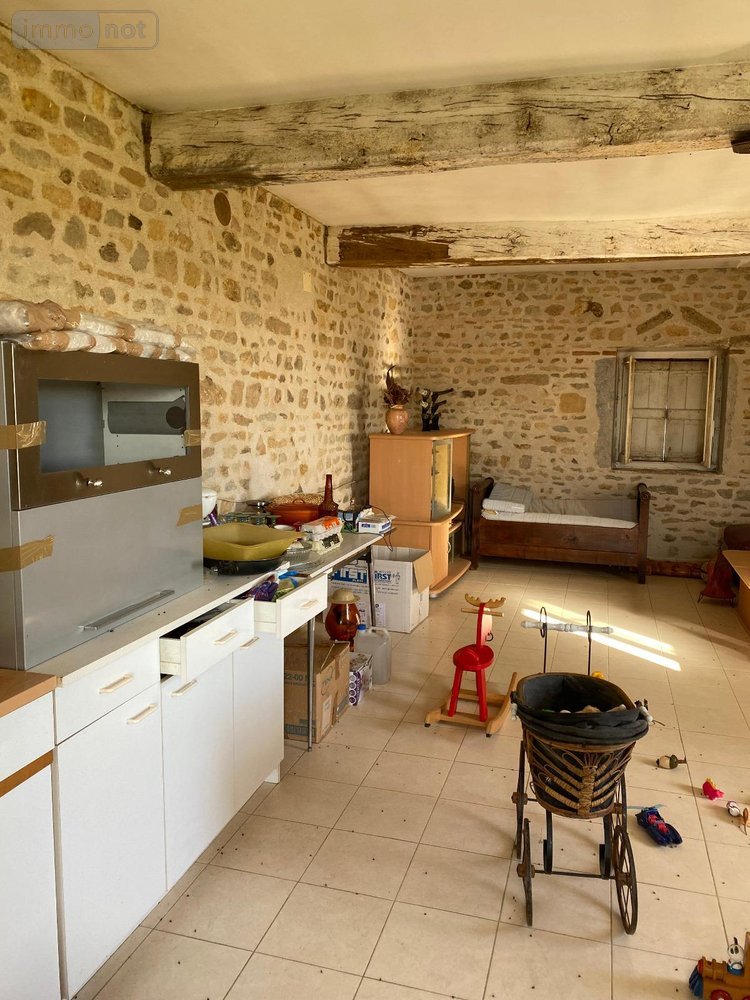 Maison à vendre à Saint-Julien-de-Civry en Saône-et-Loire (71) - A LA CAMPAGNE - AU CALME - VUE DEGAGEE - Orientation SUD - A VENDRE Corps de ferme en pierre composé d'une maison d'habitation d'une superficie de 85 m² environ, comprenant au rez-de-chaussée une entrée, un salon-séjour de 36 m² avec poutres et pierres apparentes, cuisine à équiper, chambre, salle d'eau avec cabine de douche; en enfilade, un WC; Au premier étage : grenier aménageable (ouvertures d'ores et déjà existantes) ; Au sous-sol : garage en terre battue, une cave, un coin atelier, une chaufferie; Huisseries en bois simple et double vitrage, chauffage au fuel; assainissement individuel; Dans le prolongement de l'habitation : Garage, avec fenil, grange et écurie, Puits; Chauffage fuel; Terrain de 2.000m²