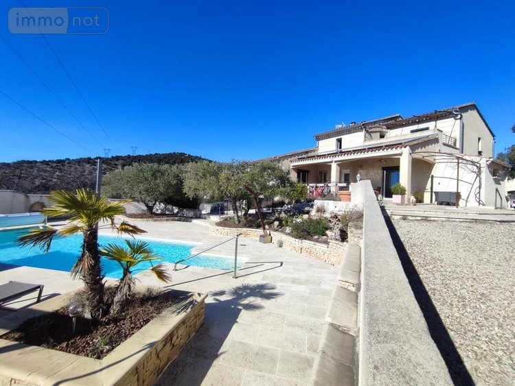 Superbe villa 5 pièces 192 m² avec piscine et appartement 2 pièces 54 m² indépendant sur 3424 m² de terrain arboré offrant jolie vue dégagée. La maison comprend cuisine aménagée, grand séjour avec mezzanine, cellier, une chambre, salle d'eau, wc. A l'étage , 3 chambres, salle d'eau, et wc. Appartement indépendant avec cuisine aménagée ouverte sur séjour, mezzanine, une chambre. Dépendances en sous sol, garage double (places pour plusieurs véhicules). Bien exposé, calme.