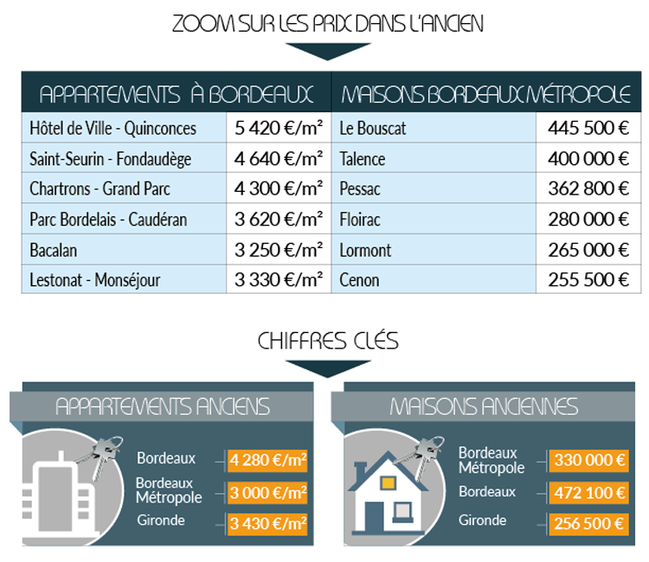 On observe un effet de ruissellement avec une hausse de 8 % pour les appartements anciens à Bordeaux dont le prix médian atteint la barre symbolique des 3 000 €/m2. Les augmentations les plus significatives concernent les villes les plus abordables début 2019, comme Lormont, Cenon, Villenave-d'Ornon, Blanquefort ou Gradignan, dont les prix varient entre 2 000 et 3 000 euros/m2 avec des augmentations à deux chiffres.