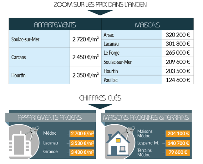 L'activité immobilière se caractérise par son dynamisme. Des villes principalement balnéaires auparavant attirent aujourd'hui des résidents permanents. Je pense notamment aux communes du Porge, Lacanau, Carcans ou encore Hourtin qui conjuguent une belle qualité de vie (lacs, océan…) et la proximité avec les sièges de grandes sociétés. En effet, elles ont élu domicile sur toute la bande Ouest de la métropole, Mérignac, Pessac, Le Haillan, Saint-Médard-en-Jalles ! Dans ce contexte, les prix moyens avoisinent les 300 000 € lorsque l'on souhaite acheter au Porge ou Lacanau. Villes qui profitent en outre de leur proximité avec le nord du Bassin d'Arcachon.