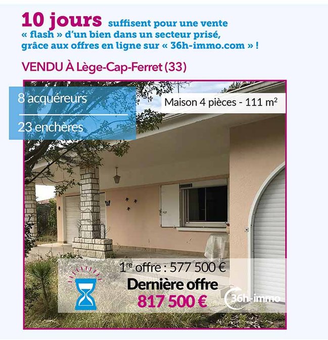 Signe distinctif : une belle notoriété puisque la vente 36h immo repose sur la signature d'un mandat exclusif de courte durée (8 semaines).