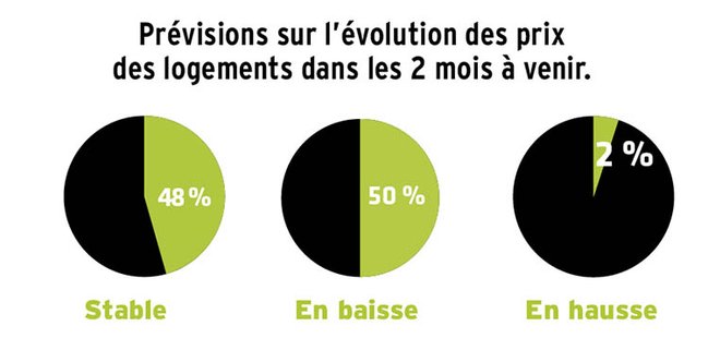 Le solde des opinions négatives varie de 44 % à 50 % au niveau des logements. Ce sont néanmoins les commerces les plus touchés puisque la proportion des répondants prévoyant une baisse des prix passe de 32 % à 51 %.